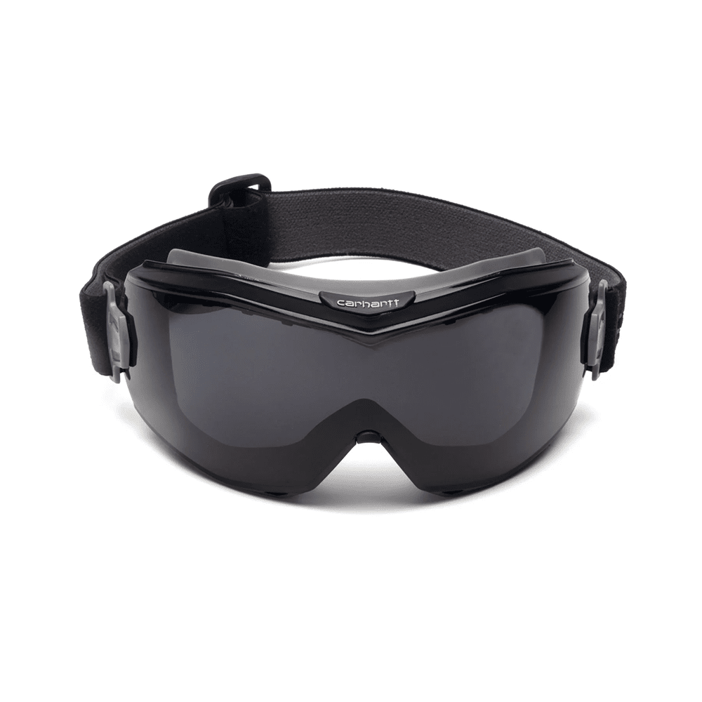 The Carhartt EK110 Goggle delivers clear, reliable eye protection all day in demanding work environments. It comes with an interchangeable gray lens for added versatility on bright jobsites. The lenses feature a panoramic design to improve peripheral awareness and are treated with H2MAX anti-fog coating to keep vision clear. The frame offers indirect ventilation to maximize airflow without letting in liquid, dust, or debris, while the adjustable strap provides a secure, comfortable fit over most prescription eyewear. The superior seal blocks liquid splashes, dust, and debris, meeting ANSI Z87.1 D3 and D4 standards.